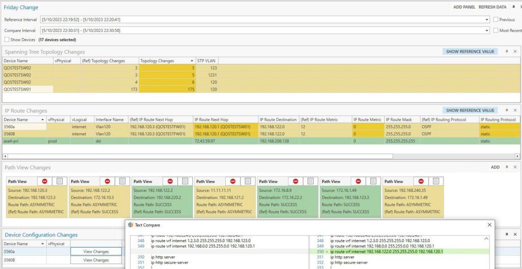 - the ChangeAssist™ Dashboard, which allows users to instantly see what has changed in their network and view a complete comparison of critical network tables before, during, and after a network change.